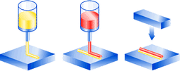 ![]() | Nakładanie kleju metodą "strużka na strużkę" (ang. bead on bead, kropla na kroplę). | ||